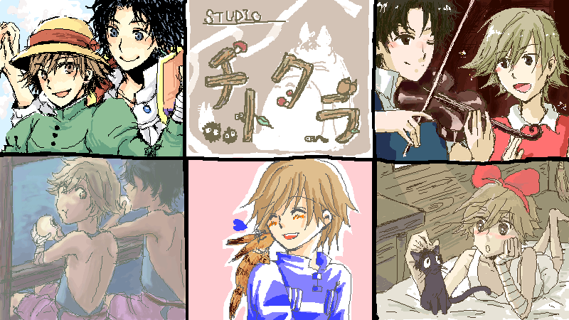 えっと、作品名も補足していくと左上からはうるのうごくしろ、みみをすませば、まじょのたっきゅうびん、かぜのたにのなうしか、せんとちひろのかみかくしです。どれも名作ですね・・・。